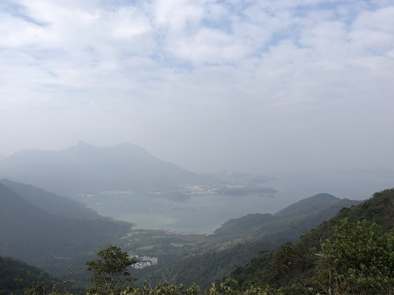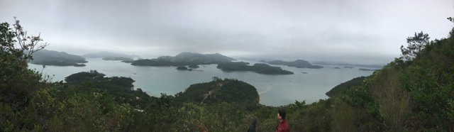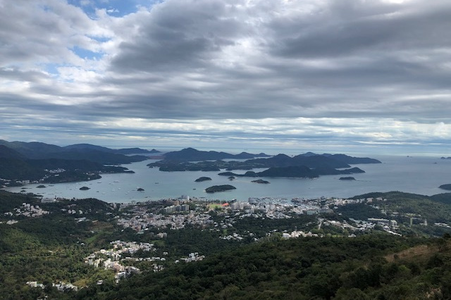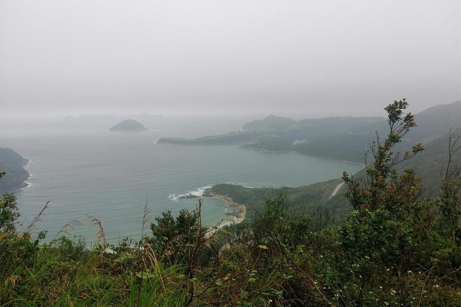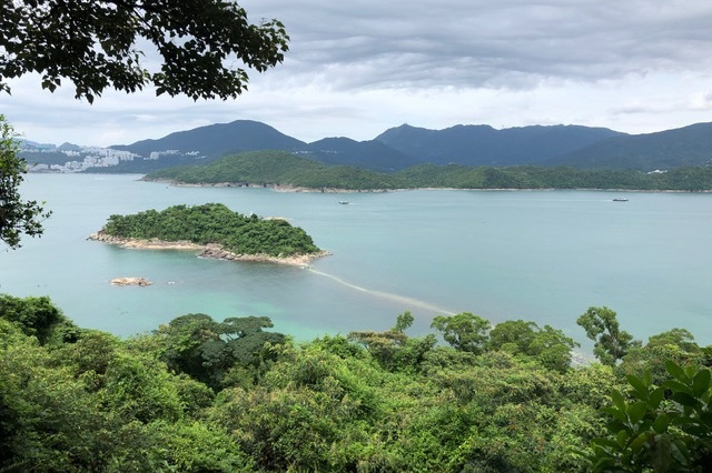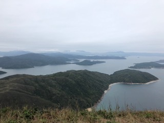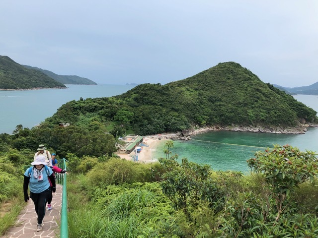 まだ時間が早かったのか降りる人も少ない。橋咀ビーチまで約1.6キロの行程。すぐに上りとなり暫く行くと後ろに廈門灣がきれいに見えてくる。コースの最高点付近で西貢側とパブリックのゴルフ場のある滘西洲を望む景観台で写真を撮る。