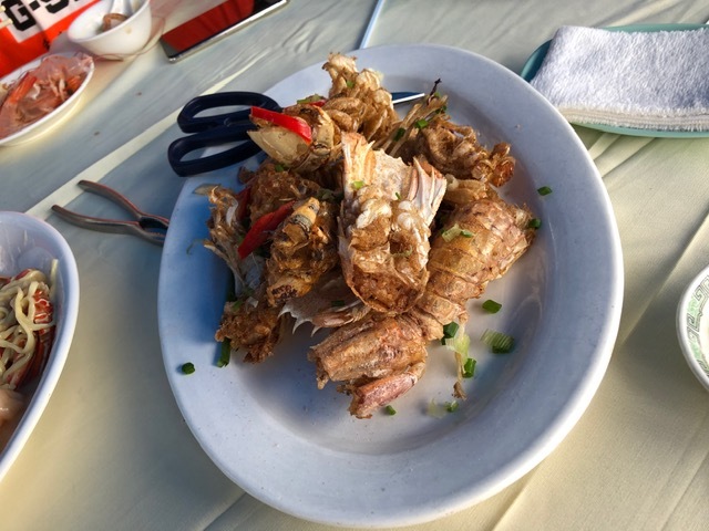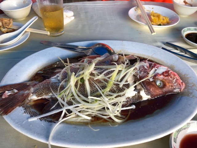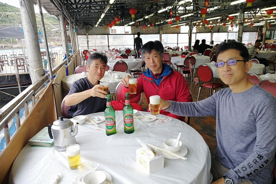 下り終えるとゴールだ。 そこからちょっと早いが布袋澳の海鮮を食べに行く。