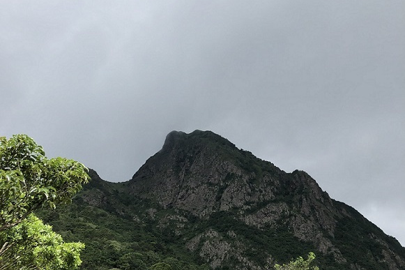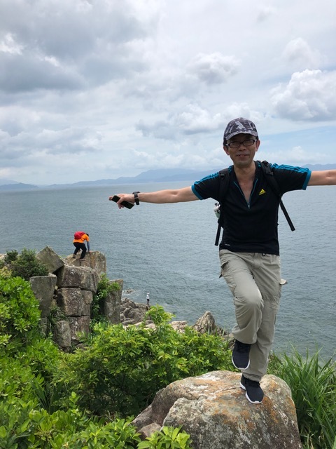 無事奇岩を写真に収めたのち海岸の岩場伝いに500メートルほど行き、島最高点へ続く道を探す。最近人通りも無かったのかもしくは雨続きだったのか道には大きな蜘蛛の巣が度々現れる。棒で払いながら進み、最高点への分岐点に辿り着いた。