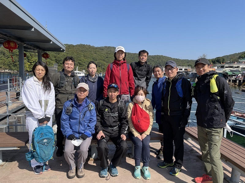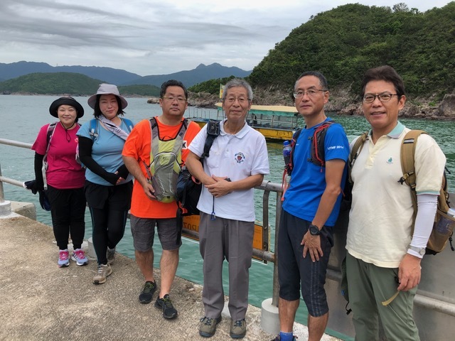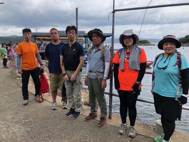 午前9時に玉野さん、河本さん、島田さん、福成さん(初参加)、山崎さん、大八木さん、小野の7名が集合し、黄石碼頭行9:18発96Rバスに乗り込む。1時間ほどバスに揺られ終点黄石碼頭に到着し、10:35発のフェリーに乗り込み11:00頃に塔門洲に到着。