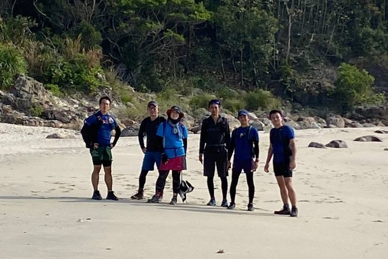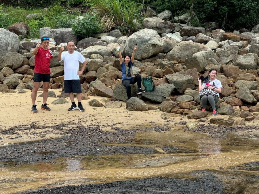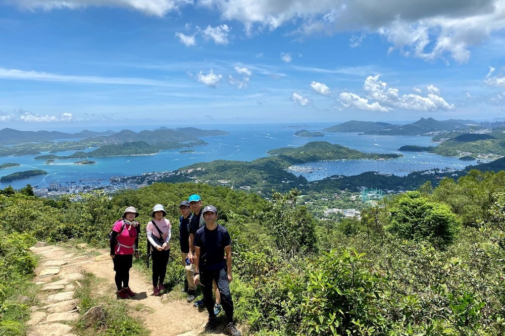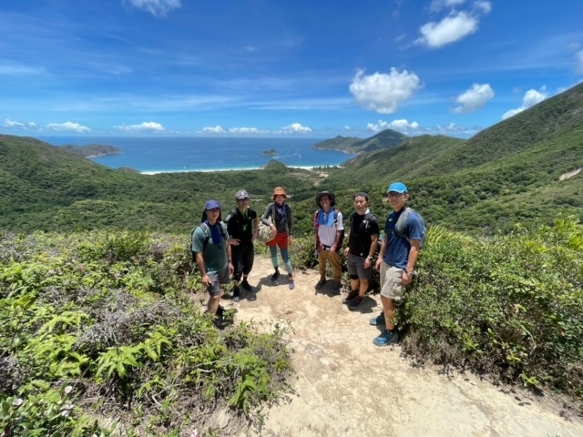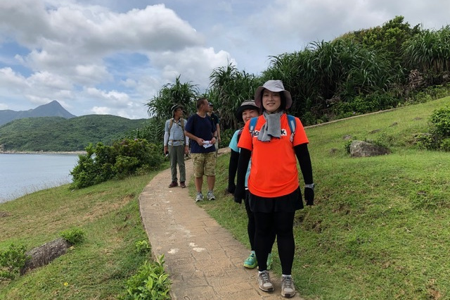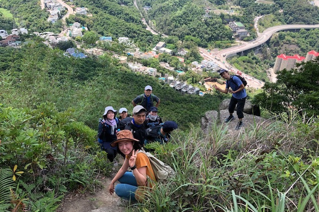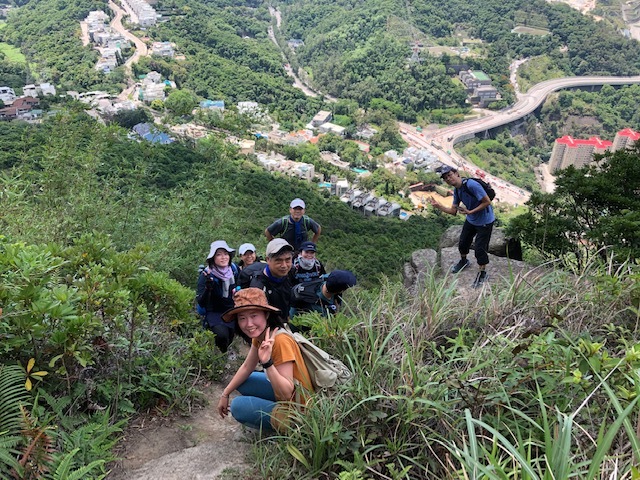 鴨仔山の三角点で記念写真をとったあと、「香港の小ハワイ」まで約1時間歩く。