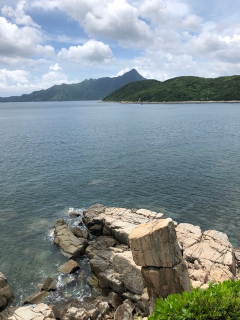 マクリのセクション1に出た後、平らな道をひたすら東壩へ向けて進みます。東壩に到着し、萬宜水庫の下まで降りて六角形岩柱群を間近で見学。六角形岩柱は500ドル紙幣のデザインにもなっており、人気の観光地となっています。この日もバスで団体ツアー客や中国からの観光客でにぎわっていました。15:15頃タクシーで東壩を出発し北潭涌でミニバスに乗り換えて西貢市内へ戻りました。