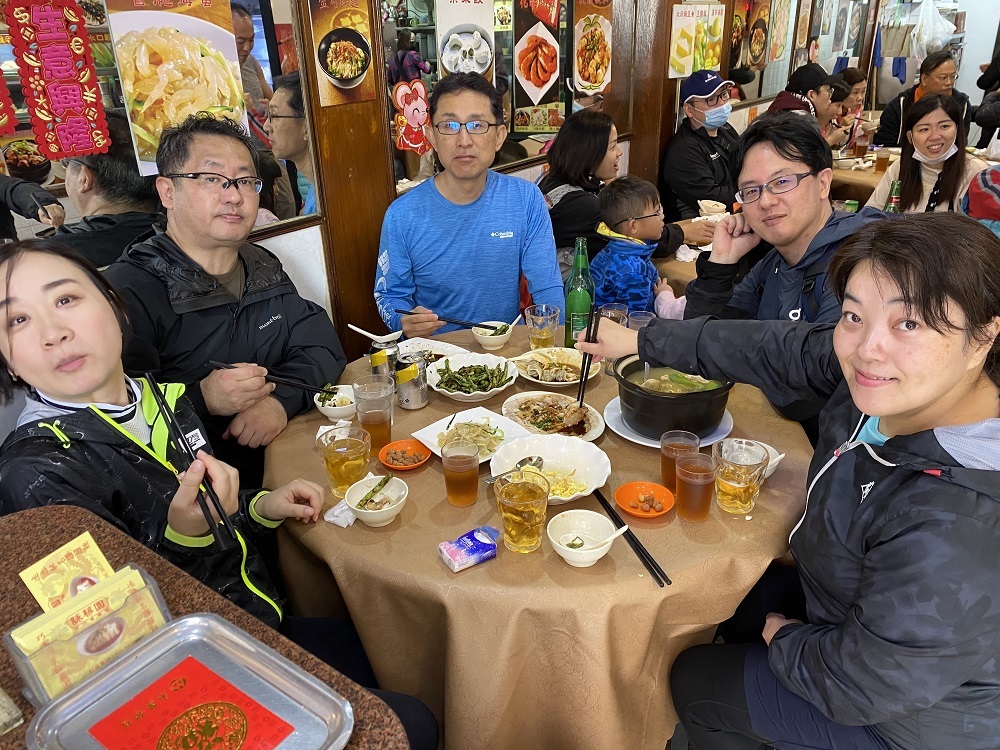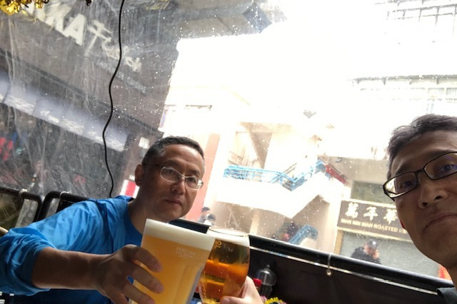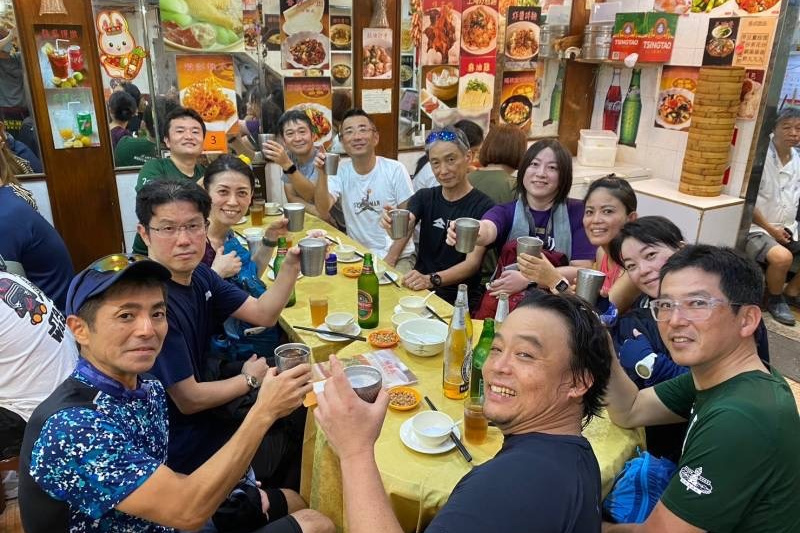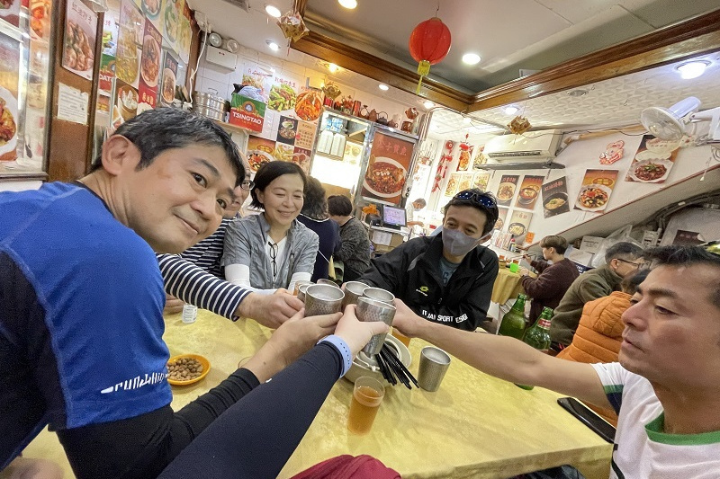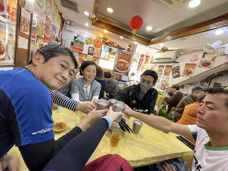 ハイキングのあとの乾いた喉をビール17本で潤し、おいしい肉・エビ料理に舌鼓(写真参照ください)最後は名物担々麺に豆沙餅でしめて、驚きの一人170HKD。やはりこの店ははずせません。