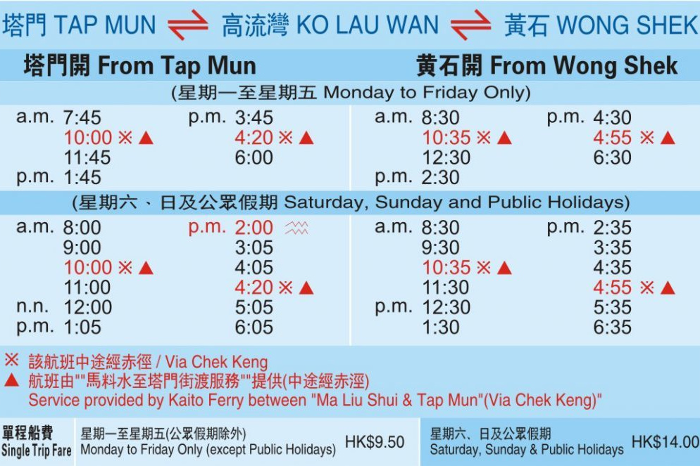 11:10西貢ミニバスターミナル・華御結前に集合。西貢公眾碼頭(長い方)から出航する糧船灣行きの街渡渡輪(Kaito Ferry Service)に乗りました(HKD 65乗船時オクトパス支払)。