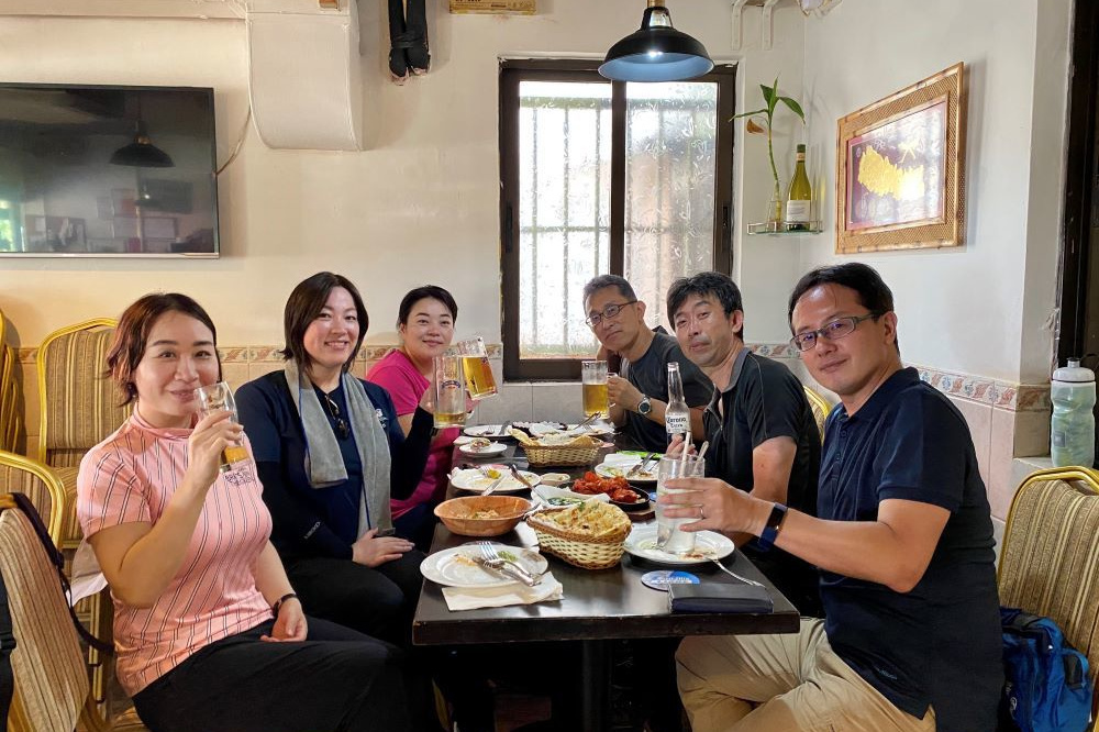金子さんと森田さんも合流し計8名で打ち上げ。店名はマレーシアとインドとなっていますが、店内はネパールの地図や絵が飾ってあります。