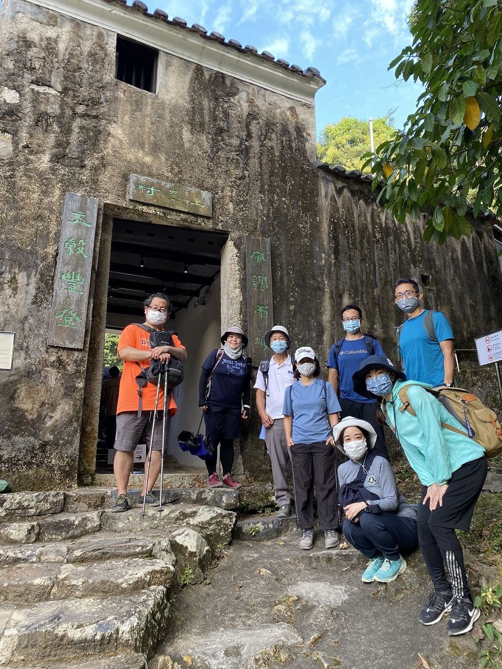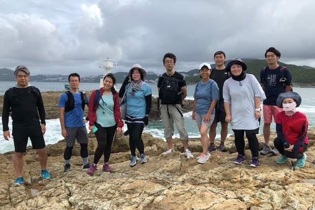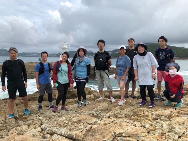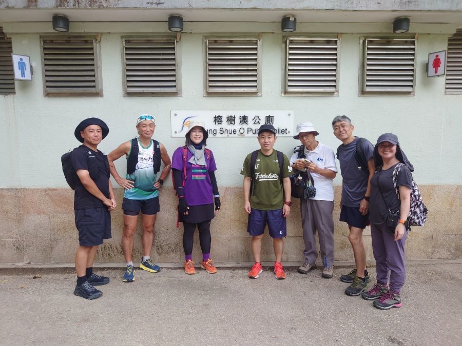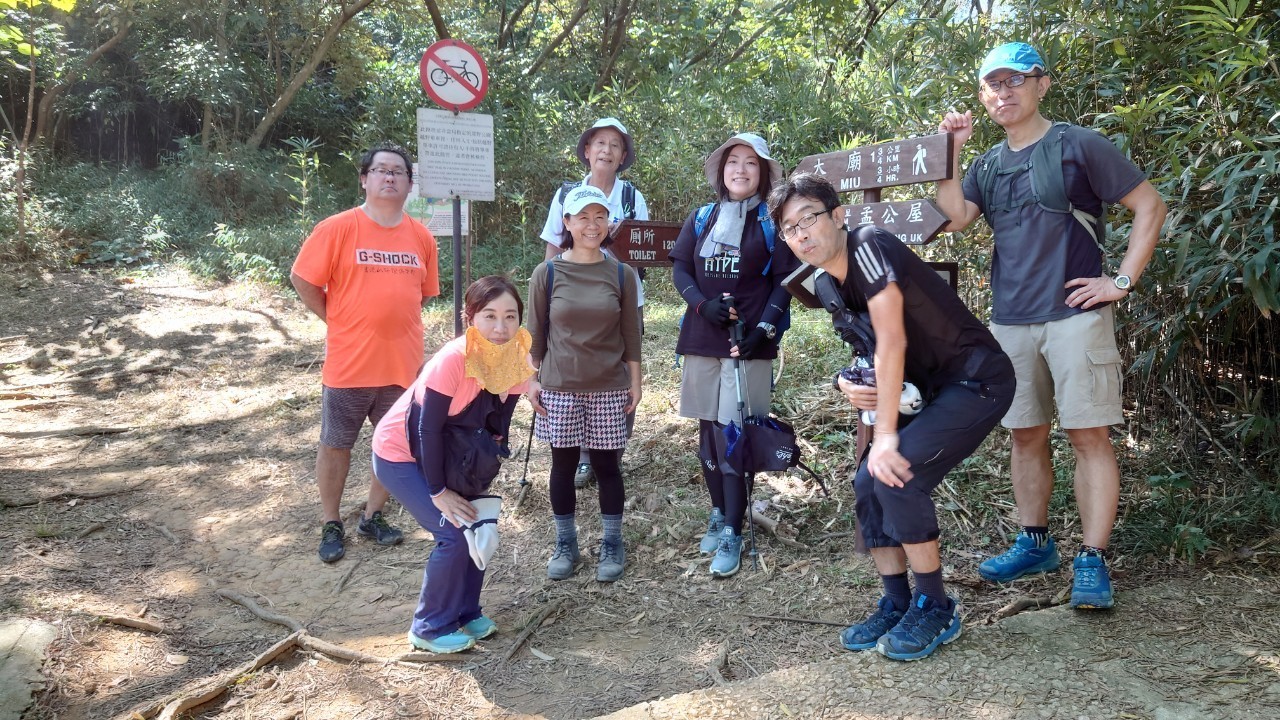 午前9時、馬鞍山駅には日本からお越しの栗田さん御一行と、旅行で来港中の福林さんに加え香港側メンバー5名、更に初参加の吉田さんで総勢12名もの方々にお集まりいただきました。天気も良さそうなので張り切ってNR84のバス停に並んだものの、予定時刻の9時半を過ぎてもバスが現れる気配はありません、、、時刻表をよく見ると、9時半のバスが無く10時と記載されており、ネットで調べたら10/1付で変更されていた事が発覚!皆様を長くお待たせする事になり、大変申し訳ありませんでした。更にようやく10時発のバスで馬鞍山村に到着したのですが、スタート場所のすぐ上にある公衆トイレが改装中で使えず、、サバイバル仮設トイレのご使用となった皆様、重ねてお詫び申し上げます。