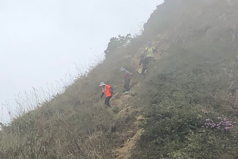2) 歩いたコースと時間(開始~終了)・烏渓沙站から5人乗りのタクシーで榕樹澳へ。ここで米田さんと合流し、嶂上郊遊徑からスタート。いきなり延々と登りが続きへとへと。