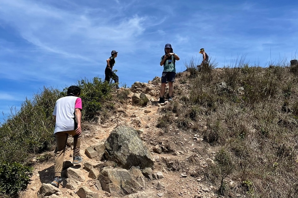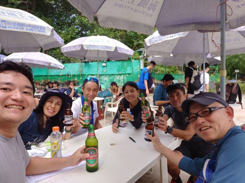 無事マクリのルートに復帰し、今度は昴平方向へと下る途中、健脚な皆さんは大金鐘へも登りたいとの事だったので、私と植村さんは迂回コースのマクリ正規ルートで昴平を目指し、14:10に昴平で再度合流。また10名で紅花村へと下って行き15:15西貢の街にゴールしました。