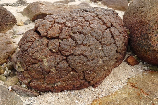 フェリーターミナルから歩き始め、まずは最初の見どころである畳石に向けて軽快に海沿いの舗装路を歩き始めた。難なく着いて思い思いに写真を撮ってから、もう一つの奇岩があるところを目指す。