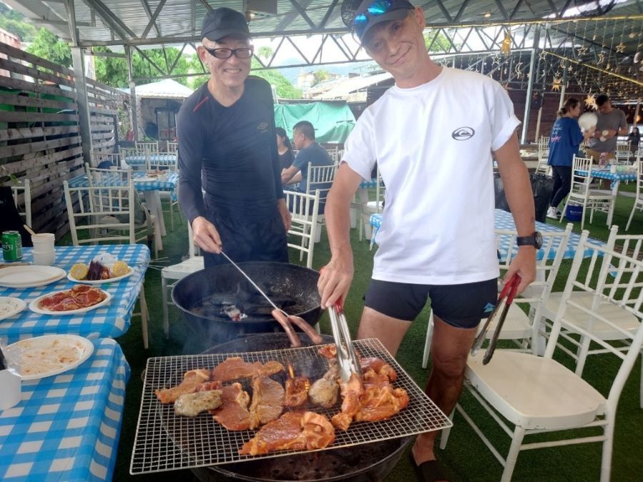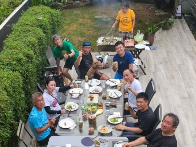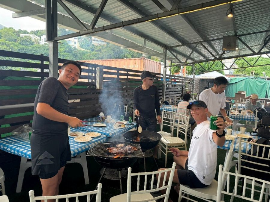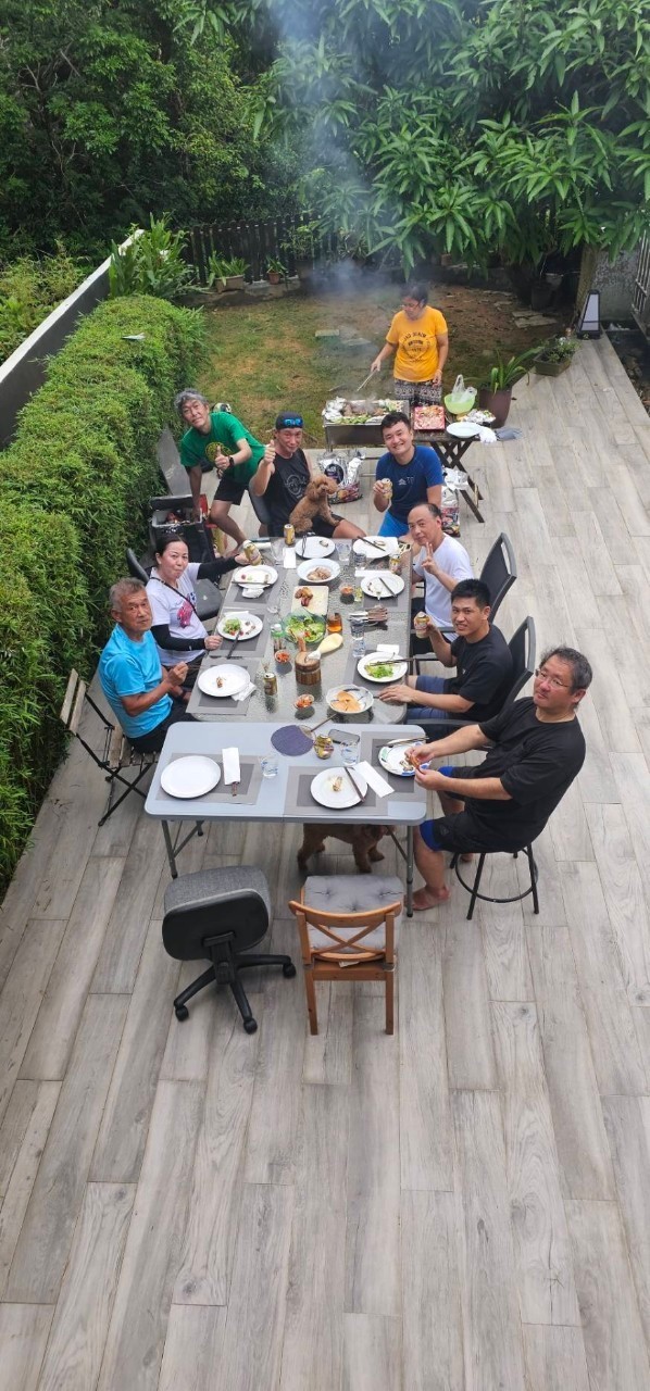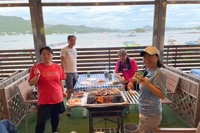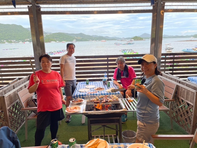 BBQ組(下井さん・米良さん・吉澤さん 五十音順)の3名が13:00に西貢にとうちゃくされ、家内が車で、迎えに行き、山組よりも一足早く、拙宅に到着。15:00ごろに、拙宅で合流し、BBQ開始。