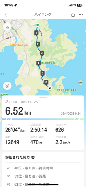 1)参加者(敬称略):小橋夫妻、佐藤さん、島田さん、平岩さん、大八木の計6名、打ち上げから金子さん、森田さんも参加2)歩いたコースと時間(開始~終了)
