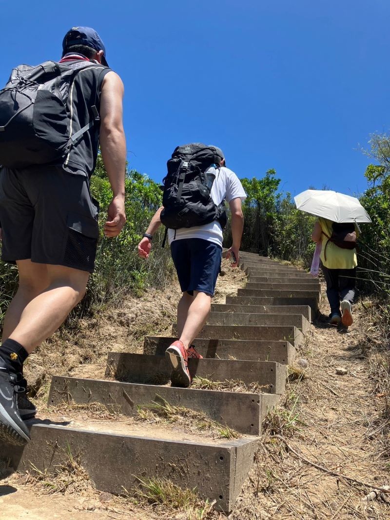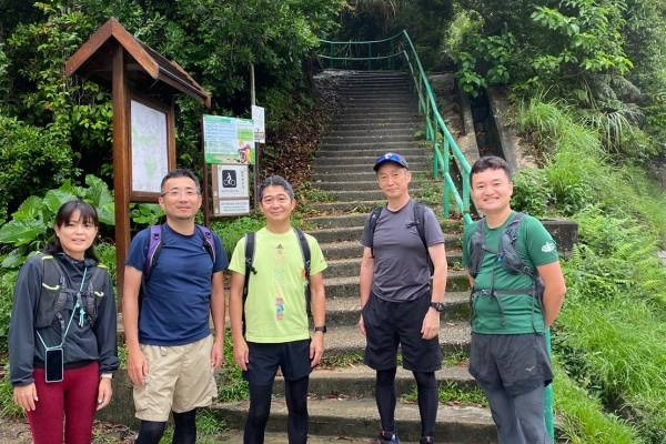 スタート地点からは歩きやすいハイキングコース舗装路を15分ほど歩き、鴨仔山頂上まで向かう階段の登り口まで到着。