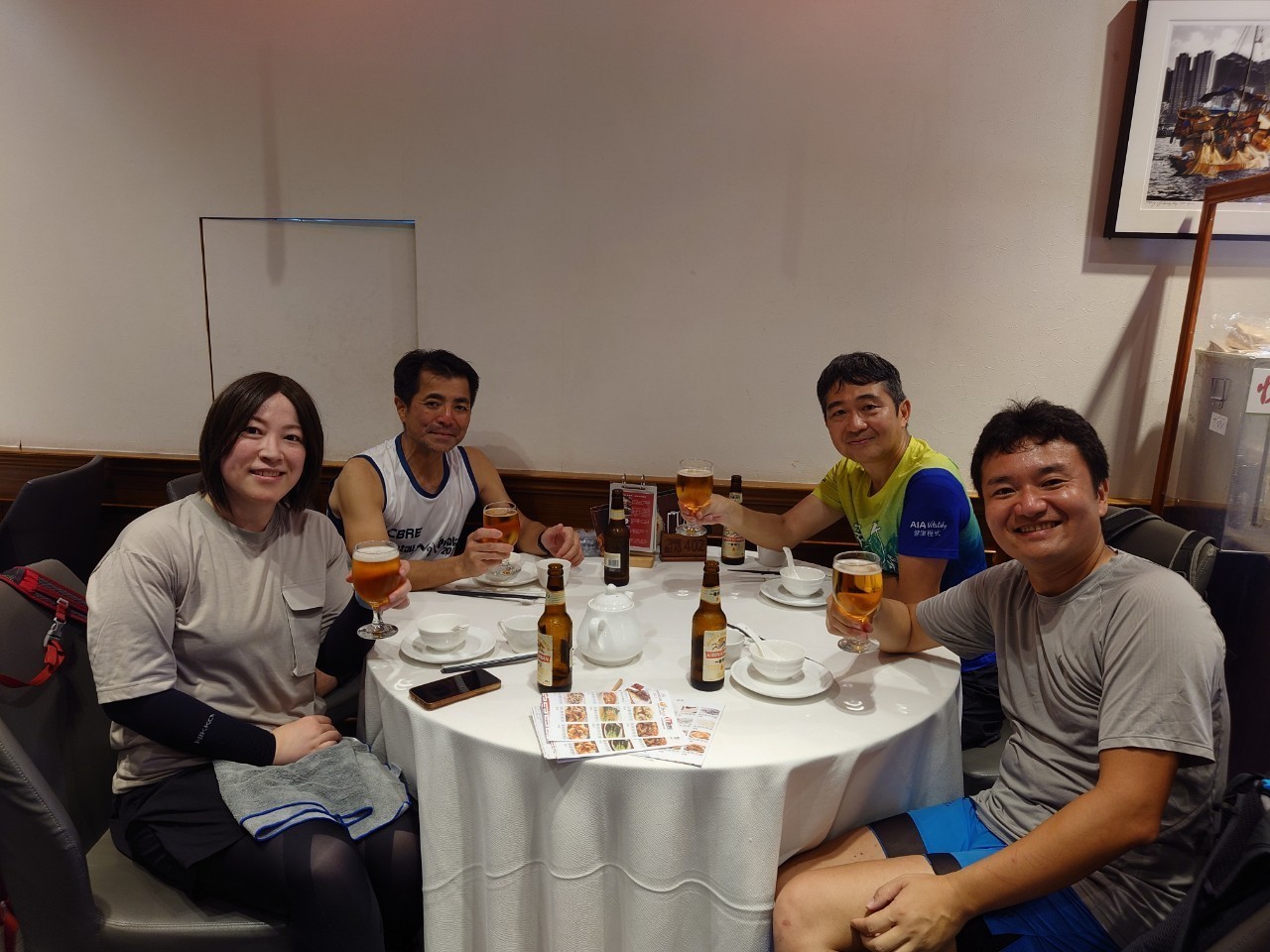 打上げは前回と同じ”168茶餐廳”で、店に置いてある唯一のビールCHANG Beer(330ml)の小瓶を各自3本飲み干し、マイタンは一人135ドルでした。グリーンカレーチャーハンは微妙に美味しかったです。