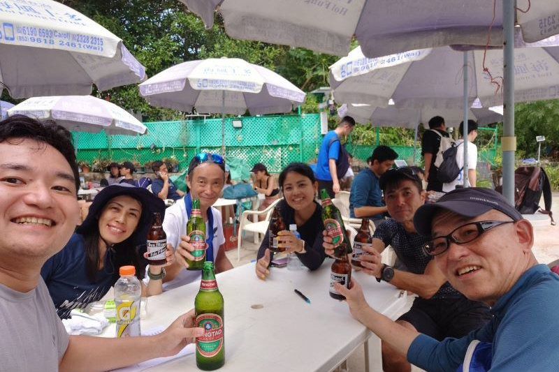*早速ビールを注文しようとしたところライセンスが切れてアルコールが出せないとの弁。交渉後コンビニで買っての持ち込みはOKとのことでセブンイレブンで青島ビール8本とワイン小瓶2本をゲット。