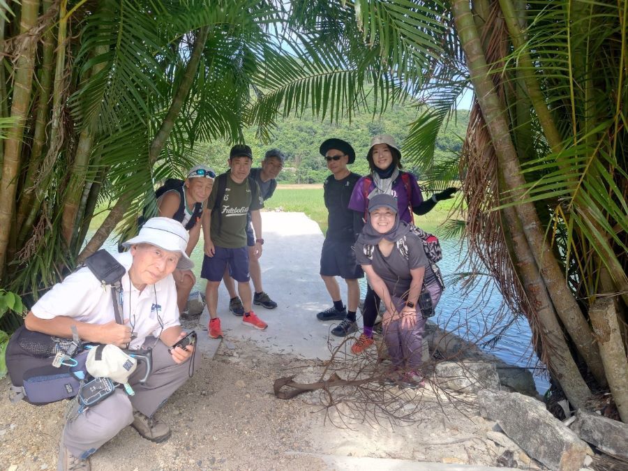 帰りが予想より遅かったせいでお二人には少々お待ち頂き、また心配おかけしました。ここまでで想定より時間がかかっており、急ぎ足でフェリーターミナル方面へ進むが、村への舗装路手前で蜂の巣があった模様でお気の毒にも河本さん、玉野さんが被害にあわれてしまいました。