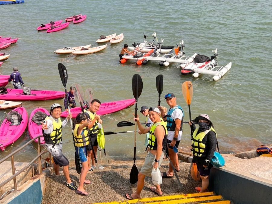 カヤック一人乗りHKD 100、SUP (Stand Up Paddleboard) HKD 150 いずれもライフジャケット付き(2025年8月31日時点の土日価格)